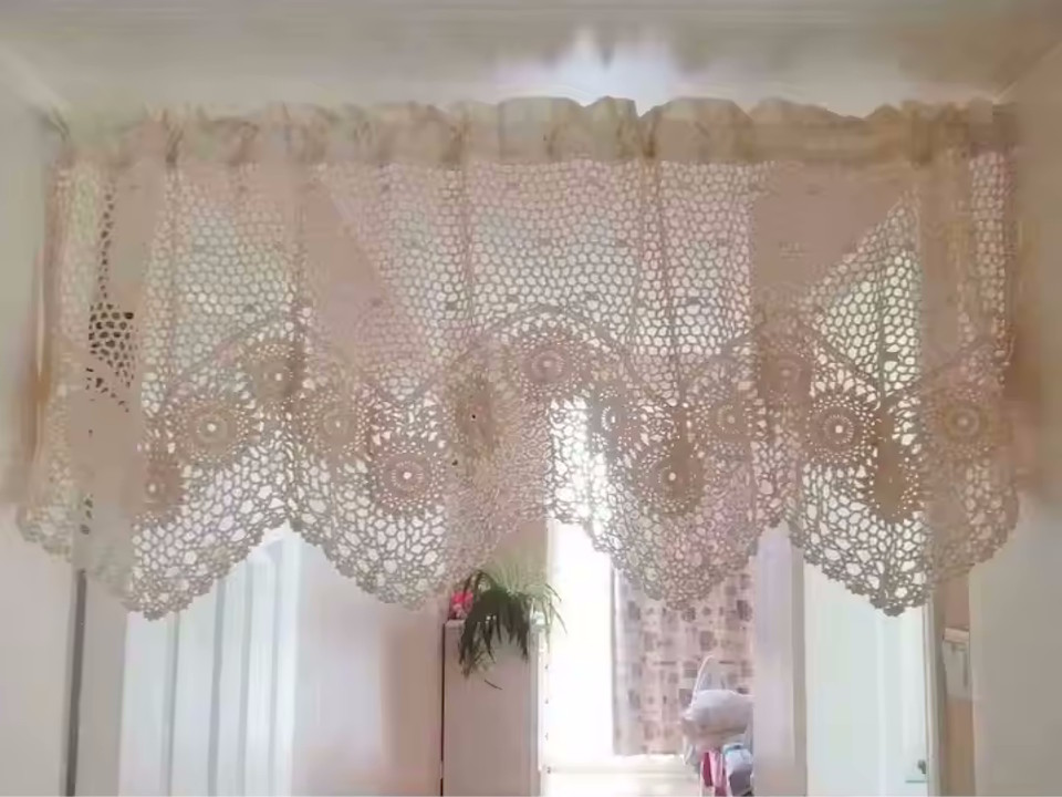 مثالية للنوافذ الصغيرة، المداخل، أو حتى كستارة ديكورية فوق ستائر أخرى، حيث يضيف الكروشيه إحساسًا بالتميز والحنين للأصالة.